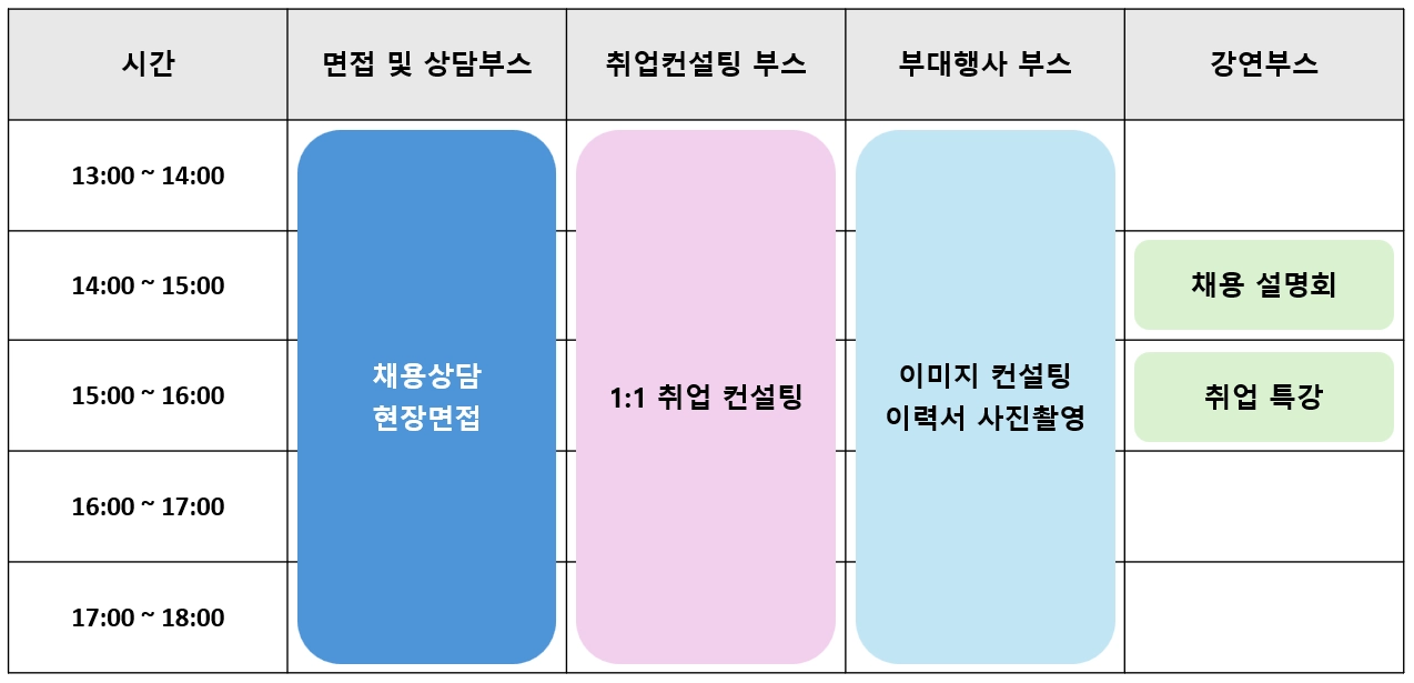 프로그램 : 현장 면접, 채용 상담, 채용 설명회, 무료 취업 지원 컨설팅 제공